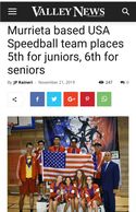 Our goal now is to spread this sport all over the U.S. Murrieta is the epicenter of this sport and will be supporting students for the 32nd World Championship. We will be collaborating within our school district schools and city to connect the younger generation to this sport. Since we were in France, schools here in California as well as other states have expressed interest. The American Federation of Speedball sign a protocol of cooperation with the French Speedball Federation, which will help to have sport camps for the players and referees between the two countries.